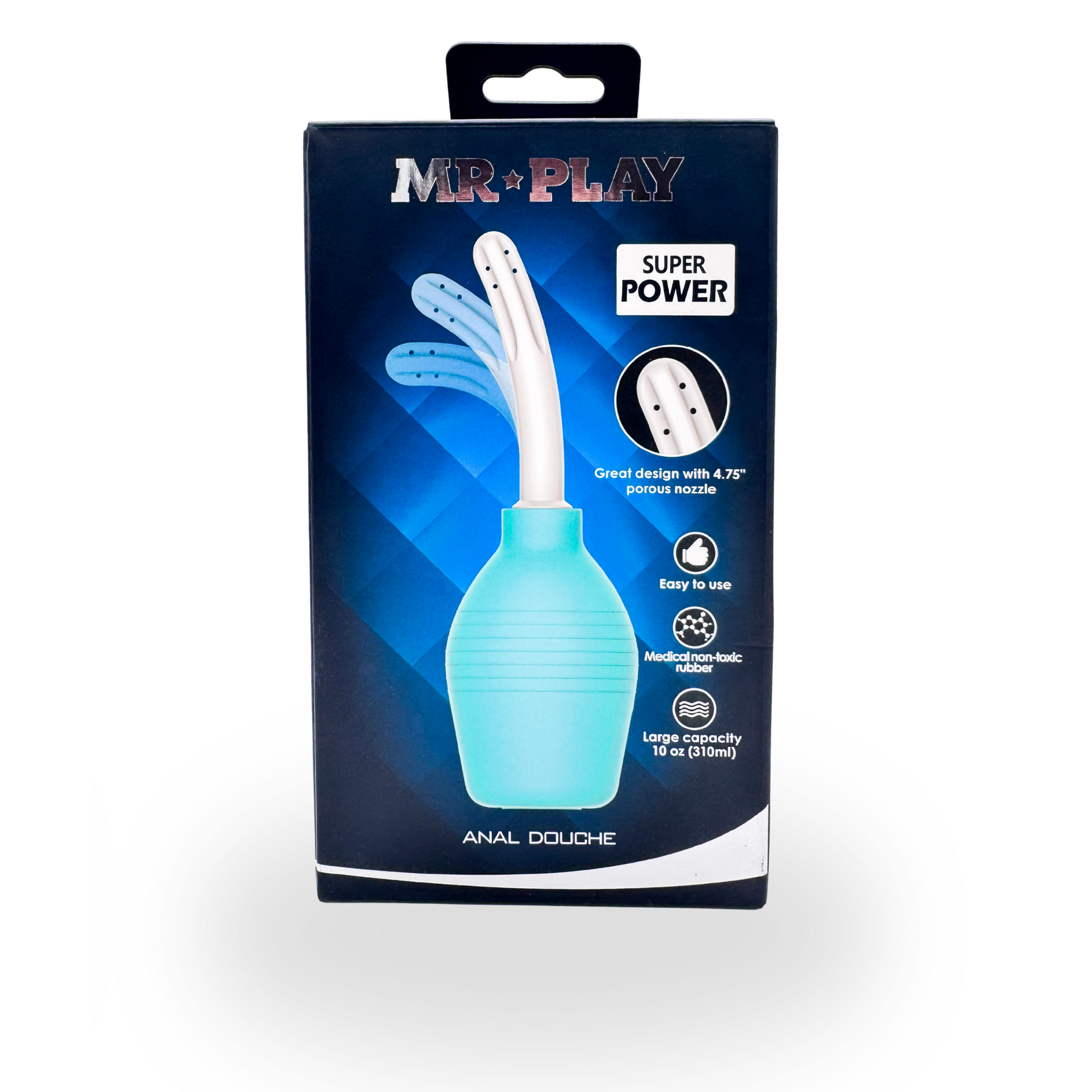 La Ducha Anal Mr. Play XL es perfecta para realizar lavados previos al juego sexual, garantizando limpieza, comodidad y seguridad. Fabricada en goma de alta calidad, destaca por su diseño flexible, fácil de usar y en un atractivo color turquesa.