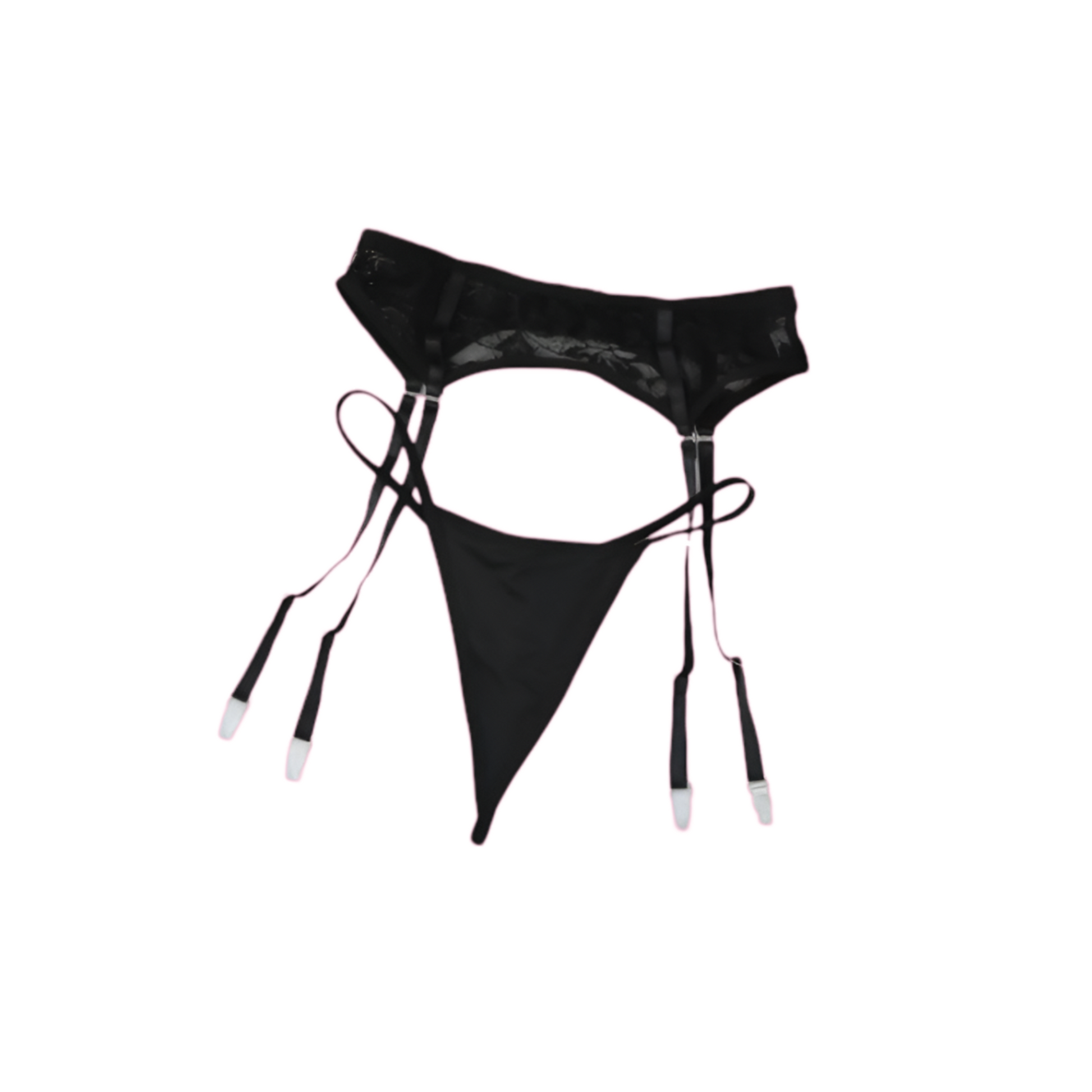Dale un toque de sensualidad y elegancia a tu colección de lencería con este hermoso liguero de encaje negro. ¡Atrévete a seducir con cada detalle!